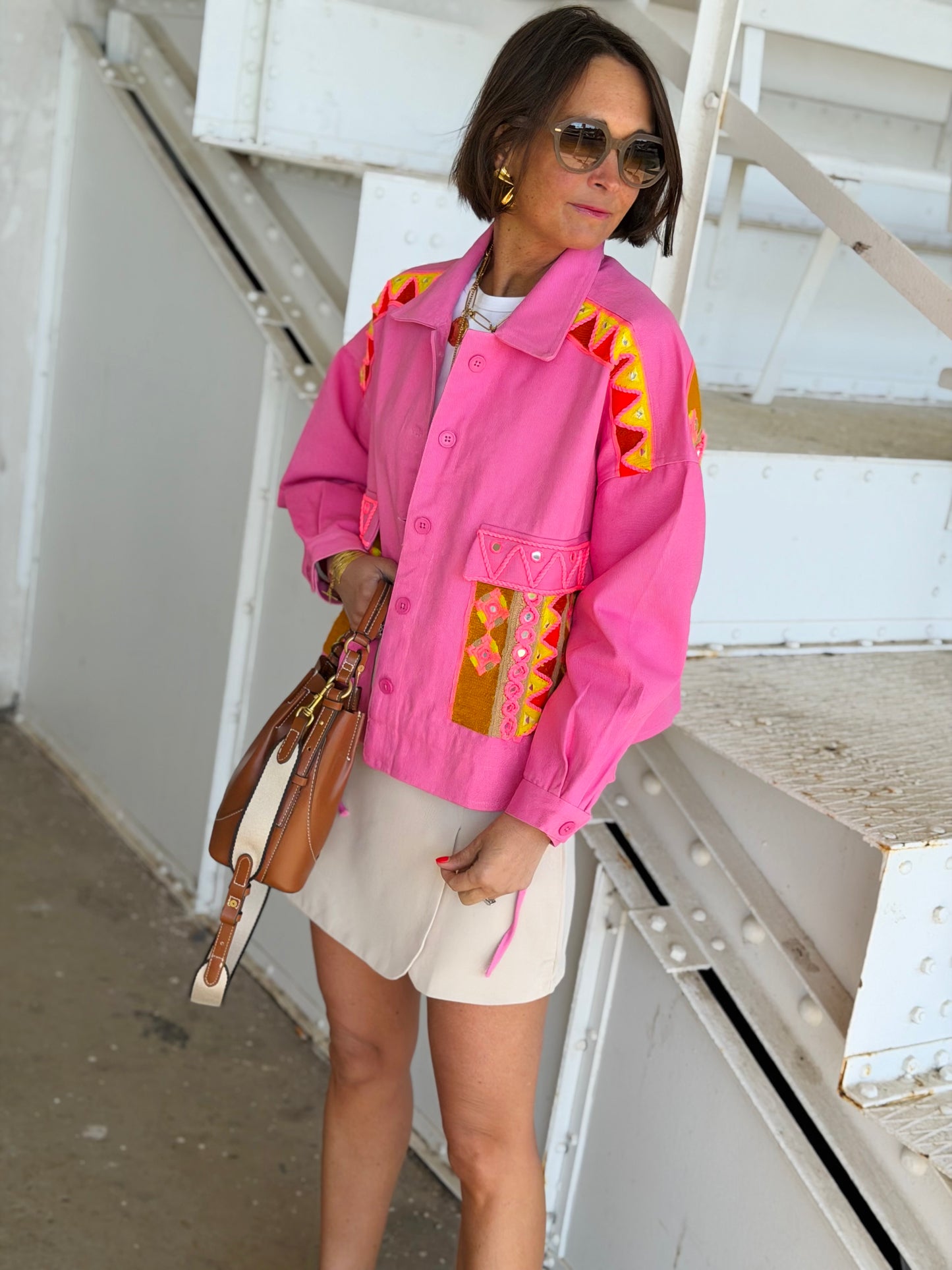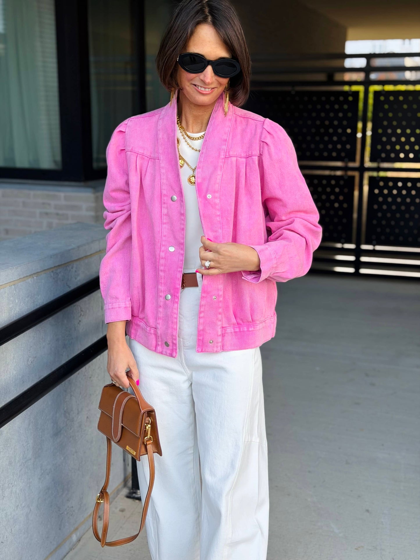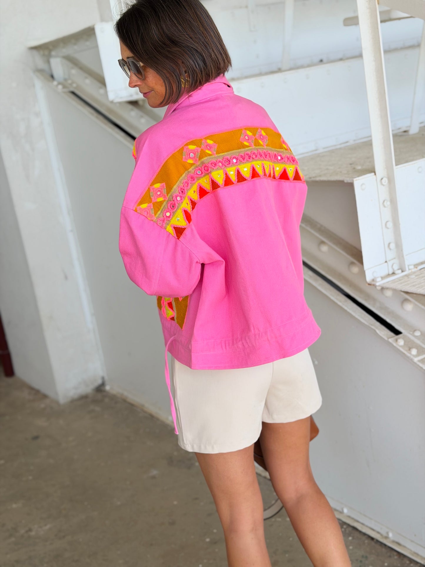 Veste courte manche LOVELY Rose fluo