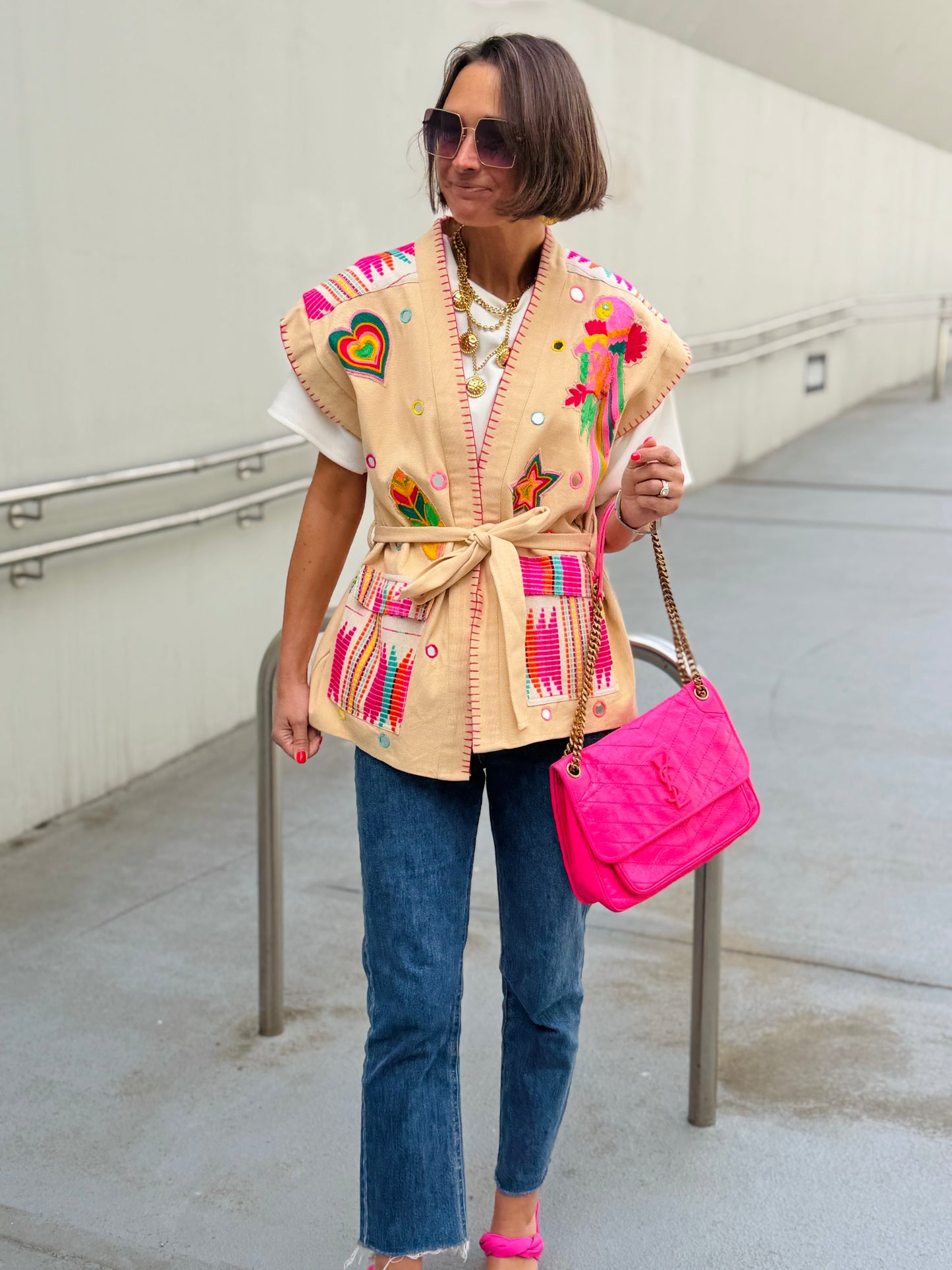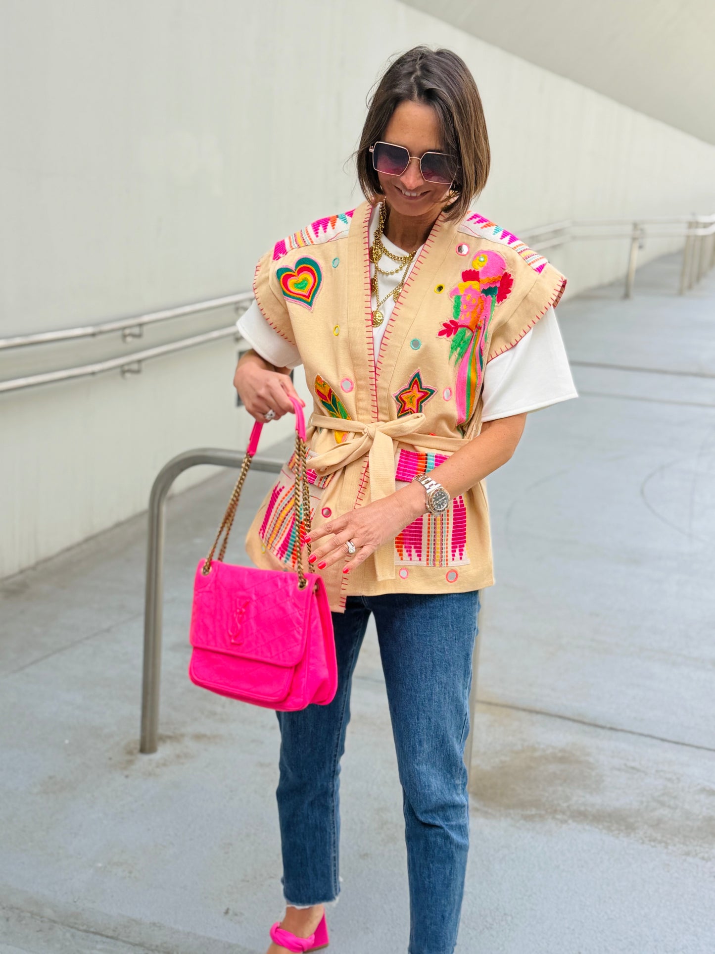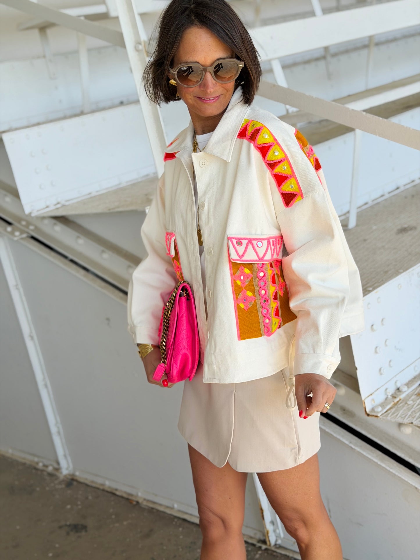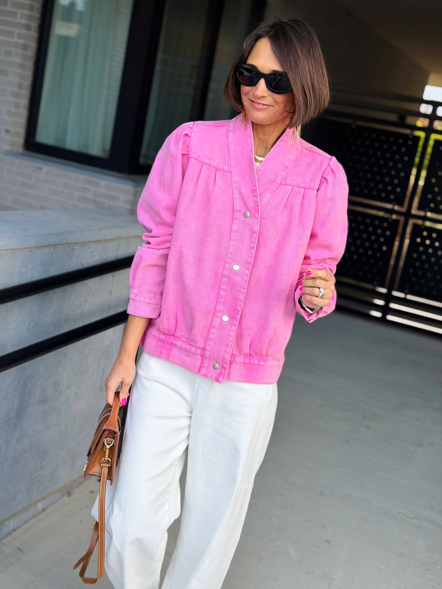 Veste courte manche LOVELY Rose fluo